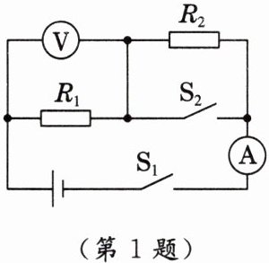 1. 如图所示,电源电压保持不变,闭合开关$S_{1}$、$S_{2}$,电压表示数为$6V$,电流表示数为$0.6A$,断开开关$S_{2}$后,电压表示数变为$2V$,则$R_{2}$的阻值和电源电压分别是(