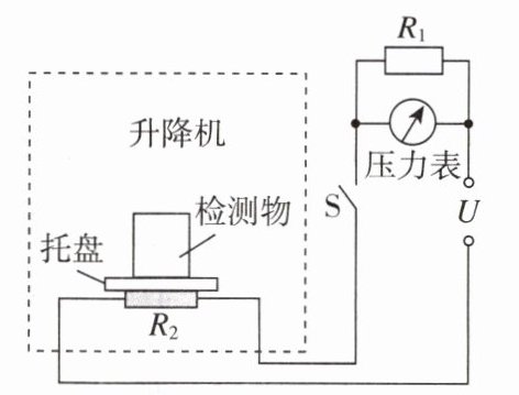 )A.升降机的托盘上水平放置的检测物越重,压力表示数越大