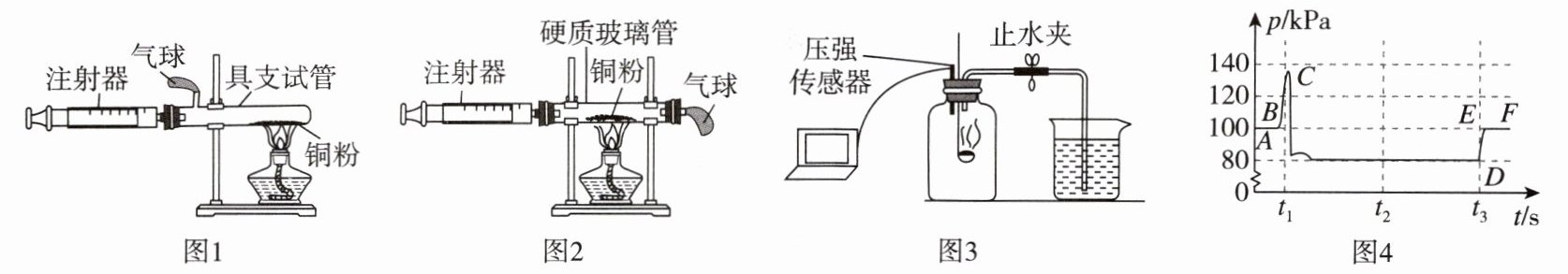 (1)图2;图2装置中的气球与注射器分别位于硬质玻璃管的两端,更有利于气体流动,从而使氧气完全反应
