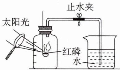 11. 小亮同学利用如图所示的装置测定空气中氧气的体积分数。他先在燃烧匙中放入足量的红磷,塞紧橡皮塞,然后用凸透镜聚光照射集气瓶中的红磷,使红磷燃烧。回答下列问题: