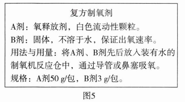 (5) 为探究制 $O_2$ 原理中 $B$ 剂的作用,向盛有水的烧杯中加入一包 $A$ 剂,观察到有少量气泡产生,再向烧杯中加入一包 $B$ 剂,立即有大量气泡产生。