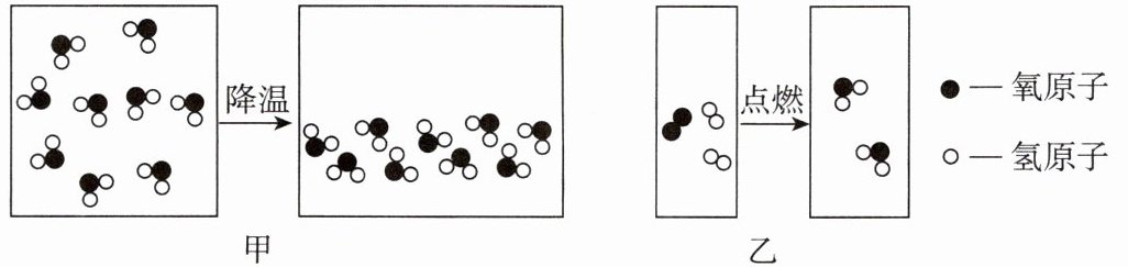 9. 科学思维题 宏微结合 如图所示,甲、乙分别是水蒸气液化、氢气在氧气中燃烧生成水的微观变化示意图。
