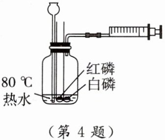 步骤2:推动注射器活塞,将部分热水压回长颈漏斗,使白磷和红磷露出水面。