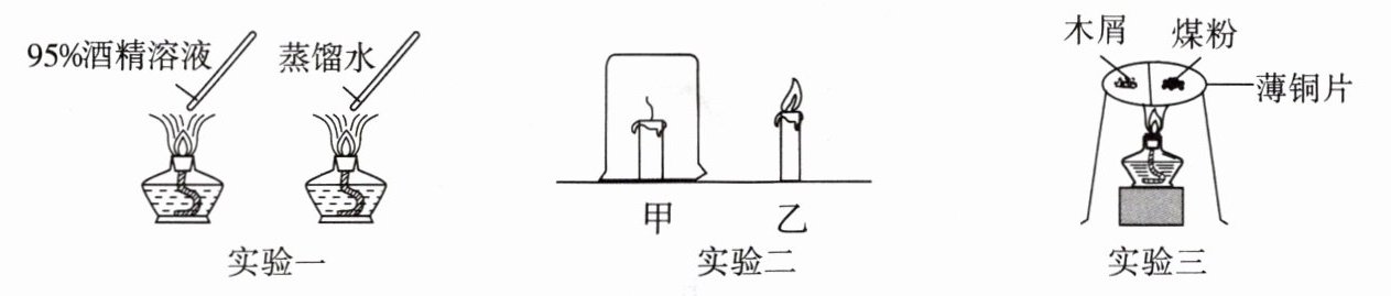 。(3)实验三中,在薄铜片上放有等量的木屑和煤粉,加热一段时间后,观察到木屑先燃烧,说明木屑的着火点比煤粉