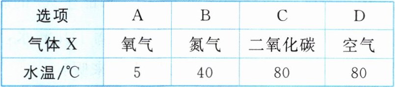 1. 如图所示,水中的白磷能否燃烧与鼓入的气体和水温有关,下表中能使白磷燃烧的是(