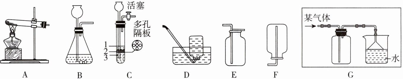 (填“1”“2”或“3”)处。(2)D~F是三种收集气体的常用装置。装置G不仅可以用来收集某种气体,还可以防倒吸。请你推测该气体的密度