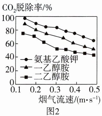 D.当烟气流速相同时,氨基乙酸钾对烟气中${CO_{2}}$的脱除效果最好
