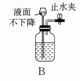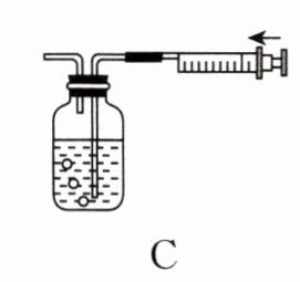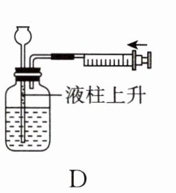 C 【点拨】本题采用原理分析法解答。A项采用的是空气热胀冷缩法,原理为用手紧握试管外壁,若烧杯内有气泡产生,松手后导管内上升一段水柱,则证明装置气密性良好;B项采用的是注水法,原理为向长颈漏斗中注水,直到长颈漏斗中的液面高于广口瓶中的液面,且两者液面差不再改变,则证明装置气密性良好;C项装置未构成封闭体系,即左边的导管与大气相通,无论装置气密性是否良好,用针筒向广口瓶内充气时瓶内都有气泡产生;D项采用的是压气法,用注射器向广口瓶内充气时,瓶中的压强增大,长颈漏斗中液面上升,则证明装置气密性良好。