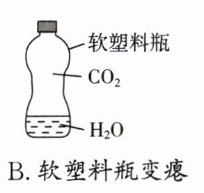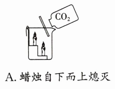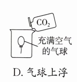 A 【点拨】A项中蜡烛自下而上熄灭,既能体现二氧化碳的密度比空气大的物理性质,又能体现其不可燃也不助燃的化学性质;B项中软塑料瓶变瘪,主要是因为二氧化碳能溶于水,所以该实验只能体现其物理性质;C项中紫色石蕊溶液变红,是因为二氧化碳和水反应生成了碳酸,该实验只能体现其化学性质;D项中倒入二氧化碳后气球上浮,只能体现二氧化碳的密度比空气大的物理性质。