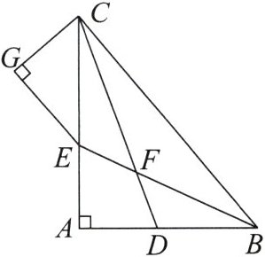 (2)证明:因为EG//BC,CG⊥EG,所以CG⊥BC,所以∠BCG=90°.因为CD平分∠ACB,所以∠ACD=∠BCD.因为∠ADC+∠ACD=∠GCD+∠BCD=90°,所以∠ADC=∠GCD.