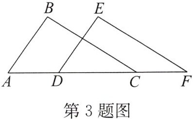 3. 如图,已知点$A$,$D$,$C$,$F$在同一条直线上,$AB = DE$,$BC = EF$,要使$\triangle ABC\cong\triangle DEF$,还需要添加的一个条件是(