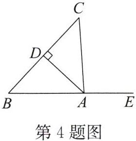 4. 如图,$AD\perp BC$,垂足为$D$,且$BD = DC$,延长$BA至点E$,若$\angle B = 46^{\circ}$,则$\angle C$的度数为