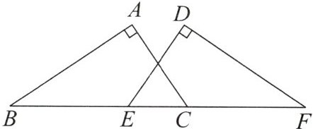 9. 如图, 在 $ \triangle ABC $ 和 $ \triangle DEF $ 中, $ \angle A = \angle D = 90° $, $ AC = DE $, 若要用“斜边、直角边 (HL)”直接证明 $ Rt \triangle ABC \cong Rt \triangle DFE $, 则还需补充条件 (