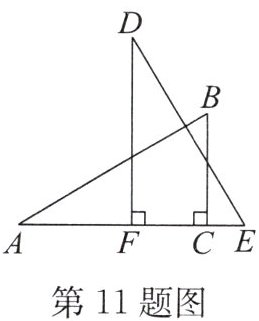 11. 如图, $ BC \perp AE $ 于点 $ C $, $ DF \perp AE $ 于点 $ F $, $ \triangle ABC \cong \triangle DEF $. 若 $ DF = 5 $, $ BC = 3 $, $ CF = 2 $, 则 $ AE $ 的长为 ______