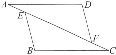 $\left\{\begin{array}{l}∠A = ∠C,\\ ∠B = ∠D,\\ AF = CE,\end{array}\right.$
