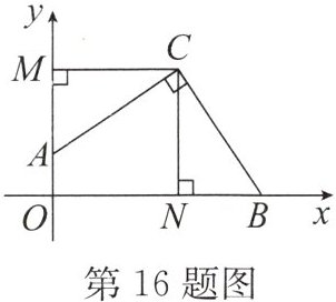 16. 如图, 在平面直角坐标系中, $ C(6, 6) $, 点 $ B $, $ A $ 分别在 $ x $ 轴正半轴和 $ y $ 轴正半轴上, $ \angle ACB = 90° $, $ CM \perp y $ 轴于点 $ M $, $ CN \perp x $ 轴于点 $ N $, 则 $ CN $ 的长度是 ______
