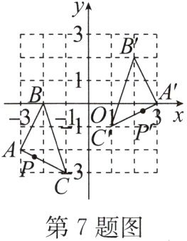 7. 如图,把 $ \triangle ABC $ 经过一定的变换得到 $ \triangle A'B'C' $,若 $ \triangle ABC $ 上一点 $ P $ 的坐标为 $ (x,y) $,这个点经过同样的变换后得到点 $ P' $,则点 $ P' $ 的坐标为(