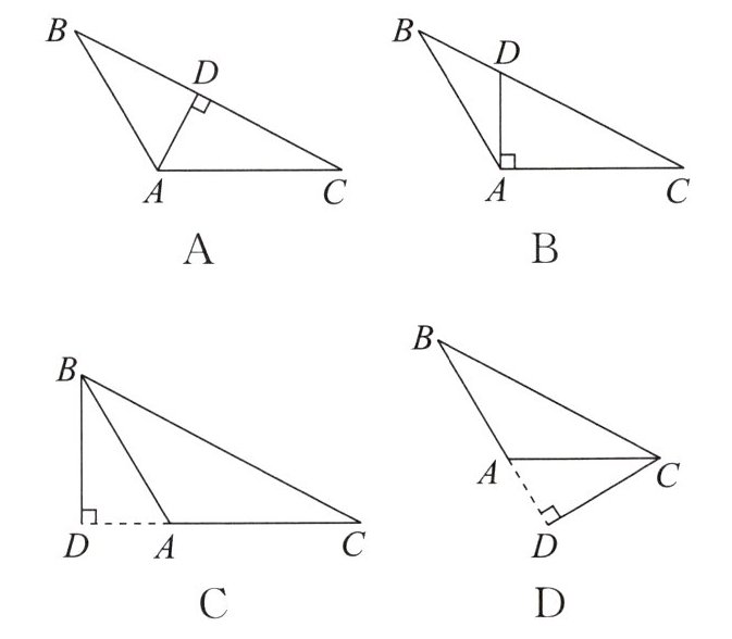 4. 画 $ \triangle ABC $ 的边 $ AB $ 上的高,下列画法中,正确的是(