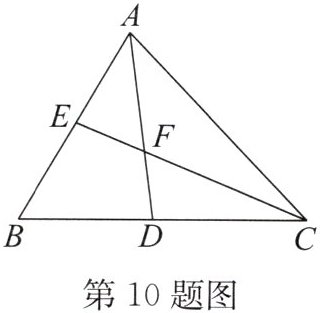 10. 如图,在 $ \triangle ABC $ 中,$ \angle ABC = 60° $,$ AD $ 平分 $ \angle BAC $ 交 $ BC $ 于点 $ D $,$ CE $ 平分 $ \angle ACB $ 交 $ AB $ 于点 $ E $,$ AD $,$ CE $ 交于点 $ F $。有下列说法:① $ \angle AFC = 120° $;② $ S_{\triangle ABD} = S_{\triangle ADC} $;③若 $ AB = 2AE $,则 $ CE \perp AB $;④ $ CD + AE = AC $;⑤ $ S_{\triangle AEF}:S_{\triangle FDC} = AF:FC $。其中说法正确的序号是( )
