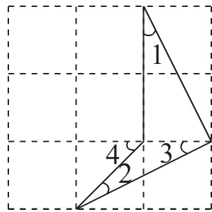 45 解析:如图,观察图形可知∠3与∠1所在的直角三角形全等(两直角边长分别为1和2),所以∠1 = ∠3. 因为∠4 = 45°, 所以∠1 + ∠2 = ∠3 + ∠2 = ∠4 = 45°.