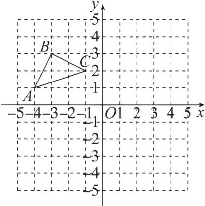 22. 如图,已知 $ \triangle ABC $ 的三个顶点的坐标分别是 $ A(-4,1) $,$ B(-3,3) $,$ C(-1,2) $。