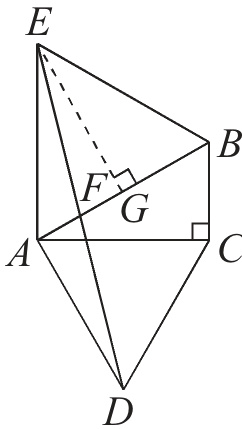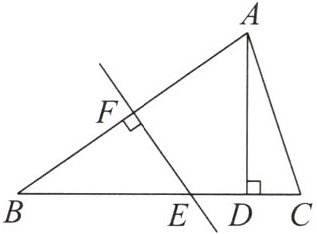 21. 如图,在 $ \triangle ABC $ 中,$ EF $ 是 $ AB $ 的垂直平分线,$ AD \perp BC $ 于点 $ D $,且 $ D $ 为 $ CE $ 的中点。
