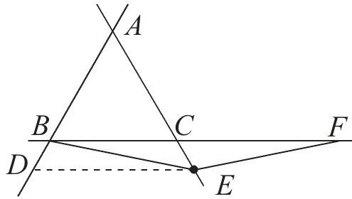 证明如下:如图,过点E作ED//BC,交AB于点D,所以∠ADE = ∠ABC = ∠BAC = 60°,∠DEB = ∠EBF,所以△ADE是等边三角形,∠BDE = ∠ECF = 60°,所以AE = DE = AD.因为EF = BE,所以∠EFB = ∠EBF,所以∠DEB = ∠EFC,所以△BDE≌△ECF(AAS),所以DE = CF.因为DE = AE,所以AE = CF.