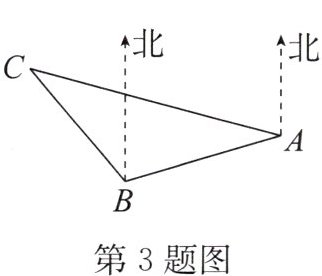 3. 如图,$C处在B处的北偏西40^{\circ}$方向,$C处在A处的北偏西75^{\circ}$方向,则$\angle ACB$的度数为______.
