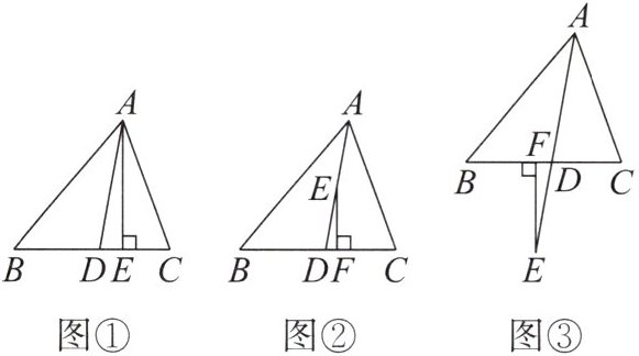 (2)如图②,点$E在AD$上,$EF\perp BC于点F$,试探究$\angle DEF与\angle B$,$\angle C$的数量关系,并证明你的结论.