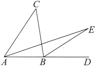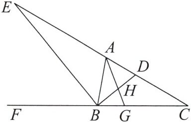 4. 如图,在$\triangle ABC$中,$∠ABC的平分线交AC于点D$,作$∠BAG = ∠C$,外角$∠ABF的平分线交CA的延长线于点E$。