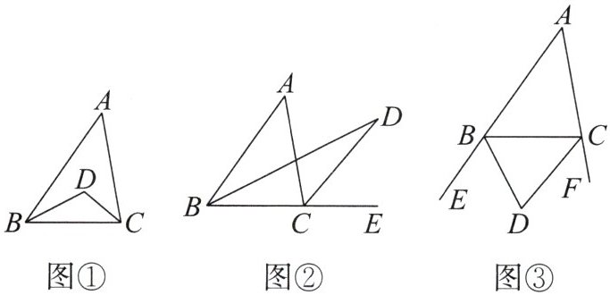 (3)若把图①中“$CD$,$BD分别是∠ACB和∠ABC$的平分线”改成“$CD$,$BD分别是\triangle ABC的外角∠BCF和∠CBE$的平分线”,如图③,怎样用含$\alpha的式子表示∠CDB$?