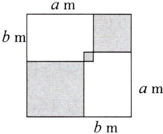 (4) 某学校“行知农场”开辟出一块边长为 11 m 的正方形菜地,计划种植黄瓜与西红柿两种蔬菜.兼顾美观,在菜地中设计两个长和宽分别为$a$ m,$b$ m 的长方形,其中每个长方形的长与宽之差为 2 m,每个长方形的面积为$35m^{2}$,如图所示,计划在图中阴影部分种植黄瓜,其余菜地种植西红柿,请求出黄瓜的种植面积.