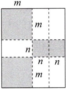 23. 如图(单位:$\mathrm{cm}$),将一张长方形纸板按图中虚线裁剪成九块,其中有两块是边长都为$m\mathrm{cm}$的大正方形,两块是边长都为$n\mathrm{cm}$的小正方形,五块是长为$m\mathrm{cm}$,宽为$n\mathrm{cm}$的全等小长方形,且$m>n$。