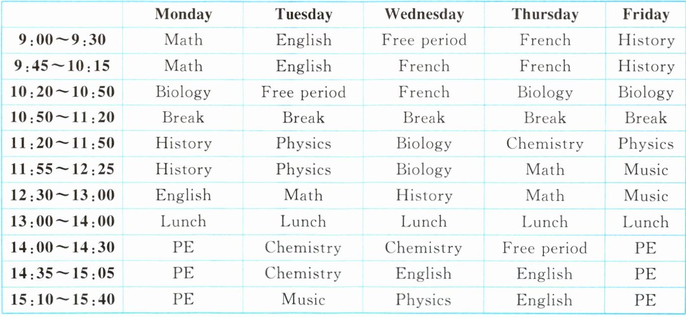 )9. How many hours do they have for French study every week?A. 4 hours.