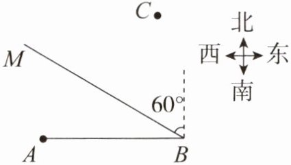 (1)在B地的北偏西60°,A地的东北方向上的交点处