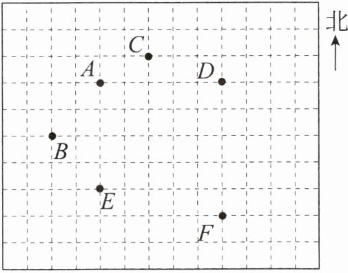 10. 如图是小明家周边地区的平面示意图:$ A $——小明家;$ B $——电影院;$ C $——新华书店;$ D $——公共汽车站;$ E $——超市;$ F $——银行.