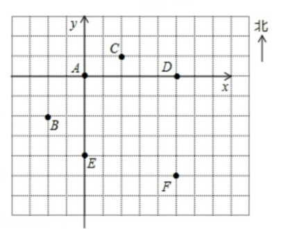 (1)以小明家为原点,以小明家的正东方向为x轴的正方向,以小明家的正北方向为y轴的正方向,建立平面直角坐标系,由题意可知:A(0,0),B(-200,-200),C(200,100),D(500,0),E(0,-400),F(500,-500).