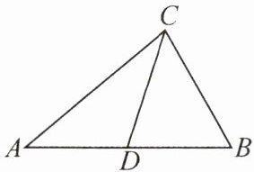 8. 如图,$\triangle ABC$ 中,$D$ 是 $AB$ 的中点,连结 $CD$,在下列横线上填写“$>$”“$<$”或“$=$”。