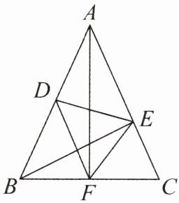 13. 如图,在$\triangle ABC$中,$AB = AC$,$BC = 6$,$\triangle DEF$的周长是11,$AF\perp BC$于点$F$,$BE\perp AC$于点$E$,且点$D$是$AB$的中点,求$AF$的长.