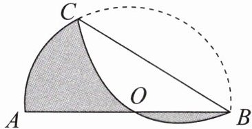 12. 如图 $AB$ 是半圆 $O$ 的直径,且 $AB = 8$,$C$ 为半圆上的一点.将此半圆沿 $BC$ 所在的直线折叠,若 $\overset{\frown}{BC}$ 恰好过圆心 $O$,则图中阴影部分的面积是