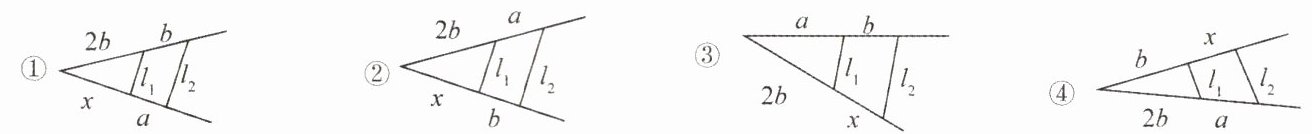 5. 已知线段 $ a $,$ b $,求作线段 $ x $,使 $ x = \frac{2b^{2}}{a} $,若 $ l_{1} // l_{2} $,则下列作法正确的是(