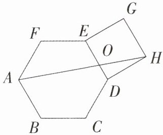 12. 如图,在正六边形 $ ABCDEF $ 外作正方形 $ DEGH $,连结 $ AH $ 交 $ DE $ 于点 $ O $,则 $ OA : OH $ 等于(