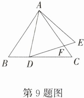 9. 如图,已知$\triangle ABC和\triangle ADE$均为等边三角形,$D在BC$上,$DE与AC相交于点F$,$AB = 9$,$BD = 3$,则$CF$的长是______.