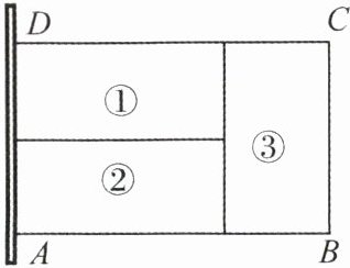 14. 为了节省材料,某农场主利用围墙(围墙足够长)为一边,用总长为 $ 80 \, m $的篱笆围成了如图所示的①②③三块矩形区域,而且这三块矩形区域的面积相等,则围成的矩形区域 $ ABCD $的面积的最大值是