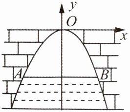 3. 某涵洞的截面形状为抛物线型,如图所示,在所建立的直角坐标系中,抛物线的解析式为 $ y = -\frac{1}{4}x^2 $,当涵洞水面宽 $ AB $ 为 12 米时,水面到桥拱顶点 $ O $ 的距离为