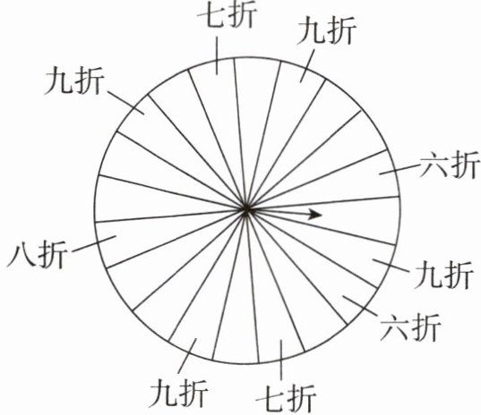 14. 如图,某商场为了吸引顾客,设立了一个可以自由转动的转盘,并规定:顾客消费满200元就能获得一次转动转盘享受优惠的机会,如果转盘停止后,指针刚好对准九折、八折、七折、六折区域中的一个区域,顾客就可以获得此项待遇;若指针正好对在空白处则无奖(转盘被等分成20份).