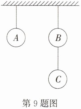 9. 若标有$A$,$B$,$C$的三只灯笼按图所示悬挂,每次摘取一只(摘$B前需先摘C$),直到摘完,则最后一只摘到$B$的概率是