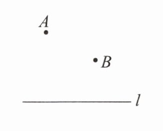 7. 如图,已知直线$l和A$,$B$两点,求作一个圆,要求圆心在直线$l$上. 且经过$A$,$B$两点.