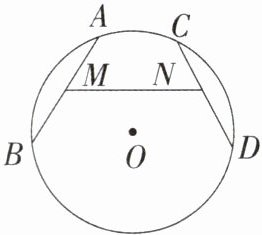 14. 如图,M,N 分别是⊙O 的弦 AB,CD 的中点,$ AB = CD $。