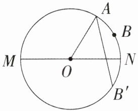 13. 如图,MN 是⊙O 的直径,点 A 是半圆上一个三等分点,点 B 是 $ \overset{\LARGE{\frown}}{AN} $ 的中点,点 $ B' $ 是点 B 关于 MN 的对称点,⊙O 的半径为 1,则 $ AB' $ 的长等于 (